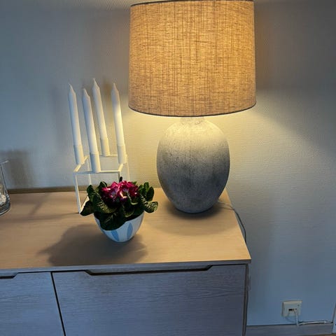 Pent brukte bordlamper med gulldekor fra Davinci. Som nye. Høyde 33cm. Høyde på kule 23 cm. Omkrets 77cm. Selger 2 stk. Selges samlet kr 1200. Røykfritt/dyrefritt hjem.