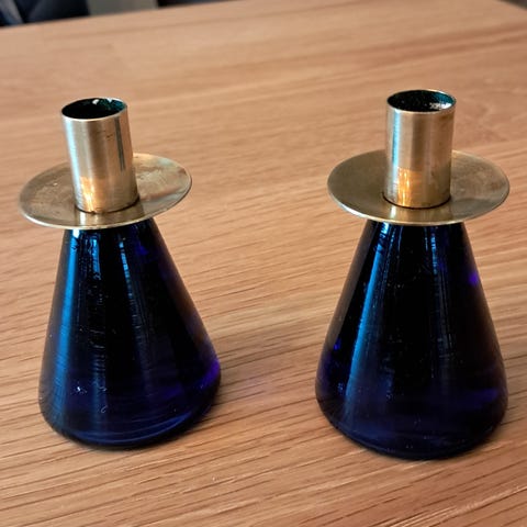 3 fine lysestaker fra Hadeland glassverk i flott stand. Fargen er rosa