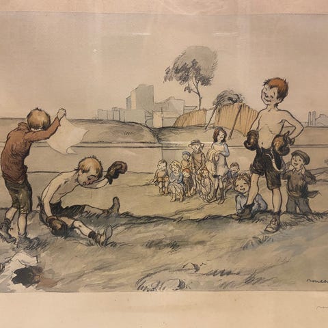 Tegningen har flott gammel ramme, med mål 36 x 27,5 cm.