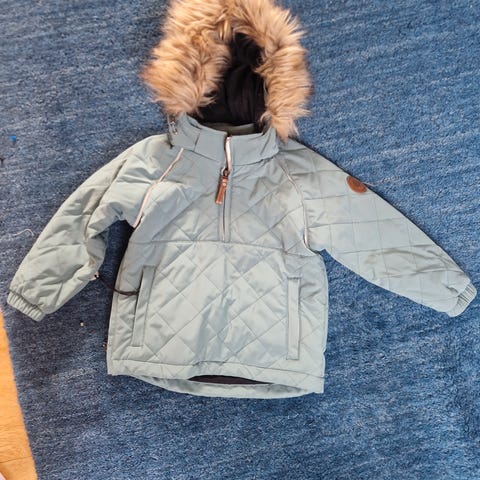 Fin vinterjakke med pels på hetta og boblebukse selges samlet