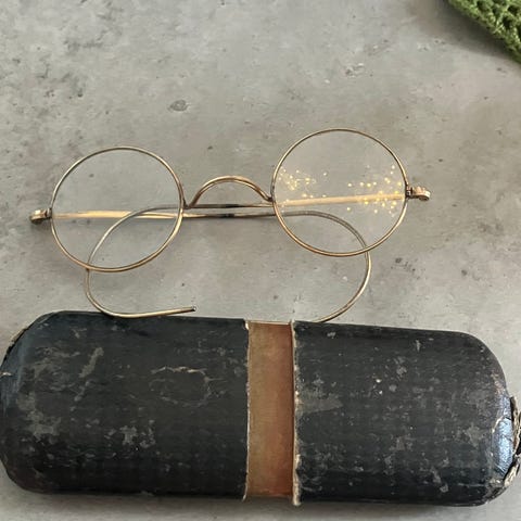 Antikke briller sølv/grå innfatning med sort etui