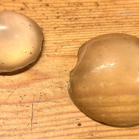Antikke briller med etui. Glassene er hele med noen småriper. Sølvfarget. Brillestengene er dekorert med et materiale kanskje bakelitt, som er i grå/brunt/gult nyanser. Det mangler en liten avslutning ytterst på den ene brillestanga. Bredde innfatning 11,5 og høyde 4 cm. Etuiet er helt. Det har bruksslitasje. Kan gjerne sendes, f eks med PostNord. Er det ønskelig med Fiksferdig, så send meg en melding så ordner jeg det.