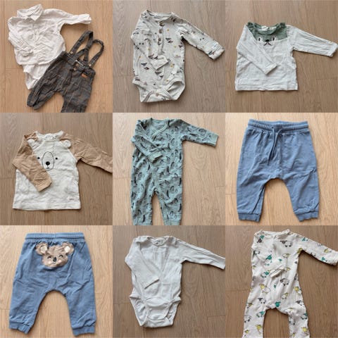 Klespakke fra 2 til 6 måneder. Alt i bomull. Fint for å spe på med litt klær. Gode kvalitetsmerker fra bla Polarn O. Pyret, petit bateau, paul smith etc.