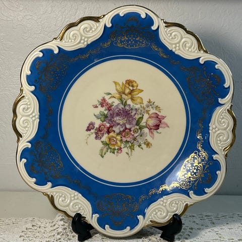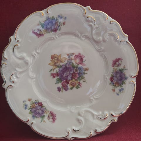 Vakkert fat med blomster og gulldekor fra Bavaria, Tyskland.