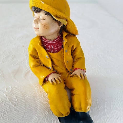 Figur - Gutt i regntøy sittendene på en stol - Candy Designs figur