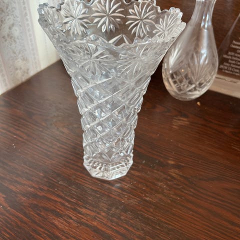 Nydelig pressglass blomstervase fra 60 tallet høyde 20 cm