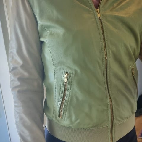 Tilstand? Pent brukt. Noe slitt nederst på ermene, et par løst tråder. Noen av knappene på innsiden foran, som jeg ikke forstår poenget med, er litt løse, men de har ingen funksjon og vises ikke. Forbehold om nupper, løse tråder etc. Pris justert (hovedsaklig pga mangel på mål -)