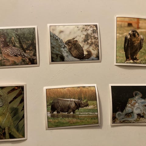 • Baksiden har dyrets navn på seks språk og klistremerkenummer