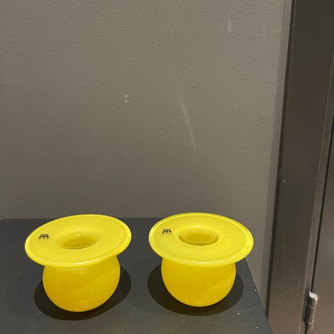 2 stk flotte lyslykter fra Magnor Glassverk - høyde 9 cm - diam. 8,5 cm, perfekt stand. Fremstår som nye. Vekten på begge to er 1580 gram. Prisen for begge to er kr. 150,-