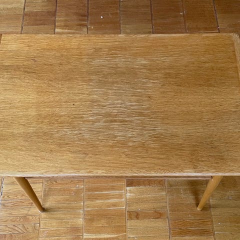 Ny pris. Gamle småmøbler. Bord og 2 stoler i eik.