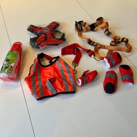 Det rosa settet er brukt veldig få ganger og hundegenser er bare prøvd på.