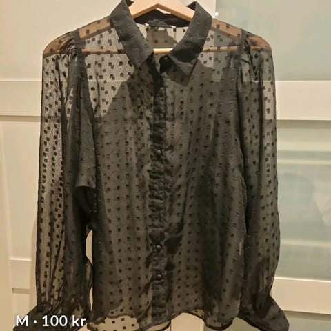 Sort ny bluse med tag, str 40 og ifra Donna veil.kr 400,- selges kr 200,- skulder og øverst bak på rygg er stoffet gjennomsiktig, tett foran.(5)