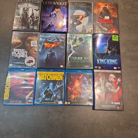 11 action/eventyrfilmer selges. Se bilder for titler. Samlet pris kr 20