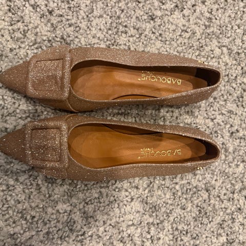 Nydelig sett fra Menbur. Sko str. 37 + clutch. Helt ubrukt. Helhøyde ca 9 cm. Clutchen er 18x8 cm, dybde ca 4.5 cm Settet kostet nytt ca 2000.-