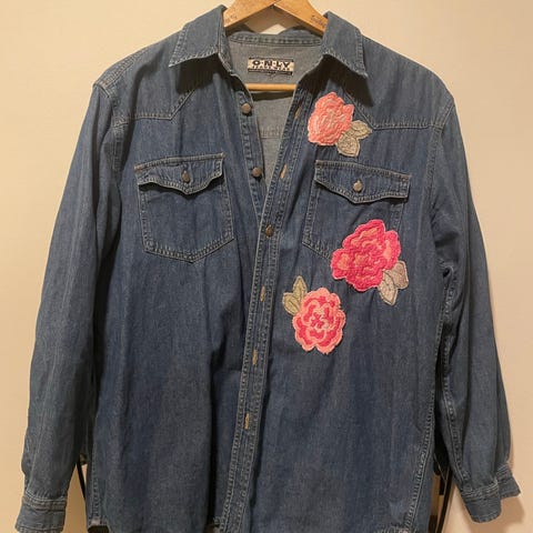 Når en er på ser ut som kapper/ volanger. Innerste laget blir for.Søtt fint blomstermoti. Er blitt liten til bruker str 38,- er str small Kan passe "jente". Pent brukt. Kjøpt i damebutikk. Kan sendes på rimeligste måte som brev.... Spør gjerne...