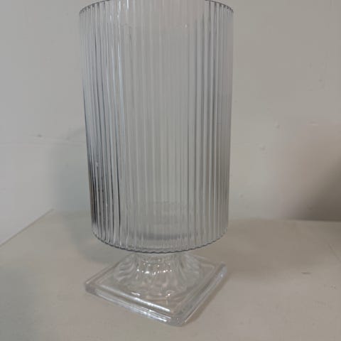 Selger en pent brukt lyslykt/vaske. Den kan brukes som vaske eller lyslykt. Gir fint lys med rillene i glasset. Høyde: 32,5. diameter 19.