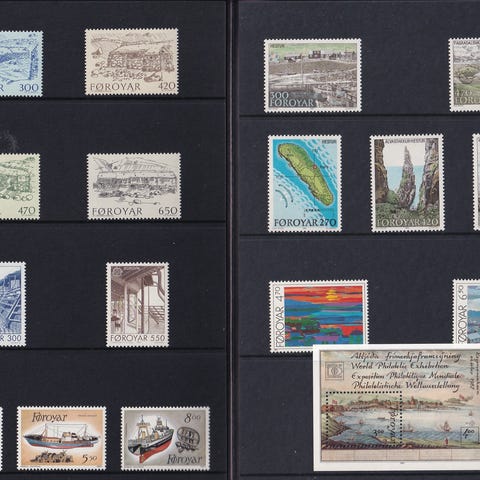 10 årssett med postfriske frimerker fra Færøyene. Årstallene ser du på bildene . Selges samlet 350kr