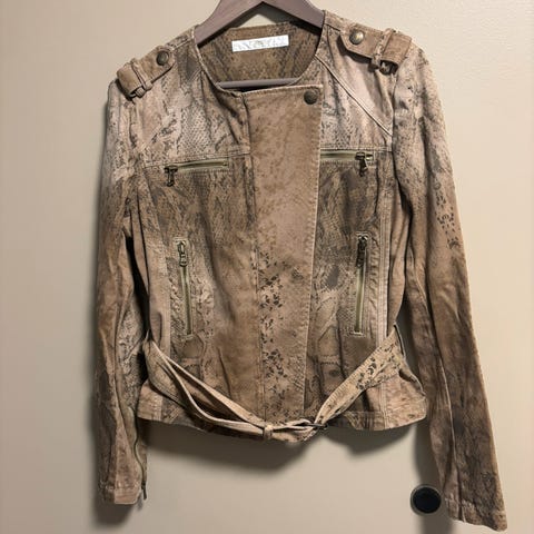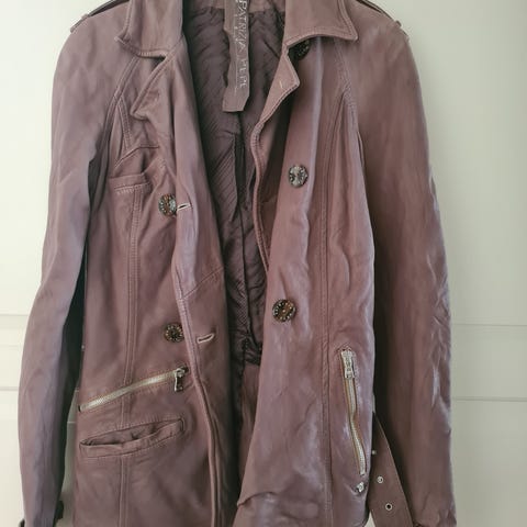 Mangler en knapp. Semsket skinn med nagler. Kan sende