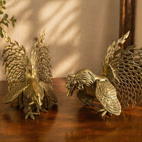 2 fine haner i messing. Retro)/vintage figurer i messing. Ca 17 cm høyde, 13cm lengde. Tung messing.