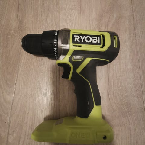 Leier ut en kraftig Ryobi bor/skrutrekker.