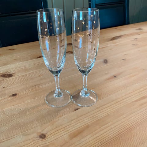 Selger 2 champagneglass fra 2000års jubileet.