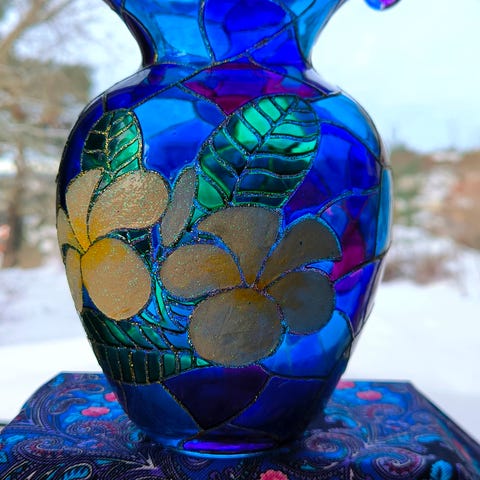 Dekorativ liten eldre « blonde kant»vase ~Murano?