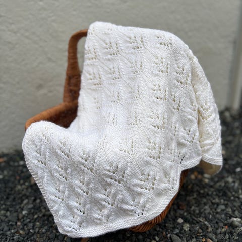 Nydelig babyteppe strikket i 100% ull! Perfekt teppe til nybakte foreldre. Størrelsen er 73x70 cm og teppet kan brukes både inne og ute.