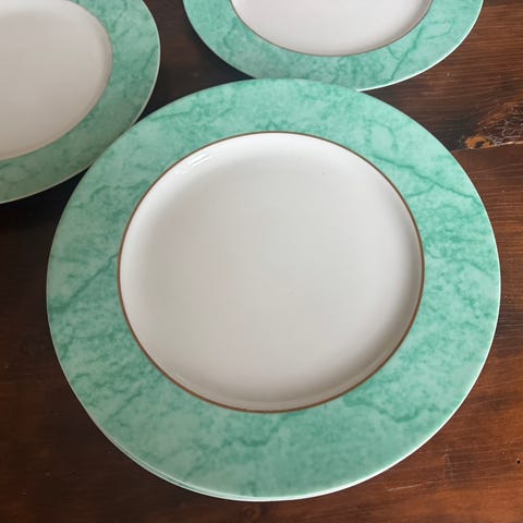 1) To hvite fat med pastellgrønn kant.