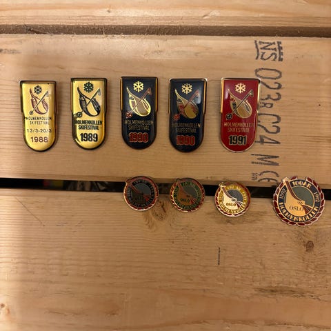 Noe fra Lillehammer OL i 94. Barnas skimerke, skarverennet, bil pins, dodgers, fredsmarsj merke. sas, IBM
