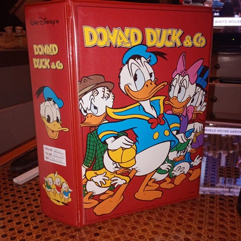 Som nye blader selger nummerert i fin og hel perm. F. o. m nr 1 og t. o. m nr 26 fra 1997. Masse vedlegg som prompepute, tatoveringer, klistremerker ligger fortsatt i bladene.Som nye, dvs ulest serie med Donald Duck og Co. Snart 30 år gamle blader, nærmest urørt av menneske hender. Et funn for en samler ev en som vil begynne å samle. Øker i verdi for hvert år som går.