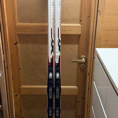 Gamle ski, men god gli fortsatt. Bør være mellom 75-85 kg mtp spenn. Velbehandlet og brukt pent i 20 år. På det ene paret er grepet til bindingen slitt av, men ingen praktisk betydning når man går på ski.