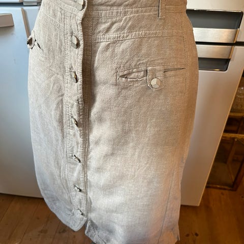 Tøft linskjørt med lommer fra Noa Noa. foret. Knelangt.