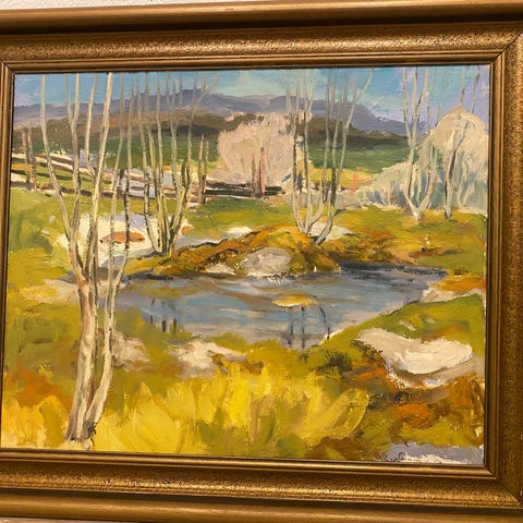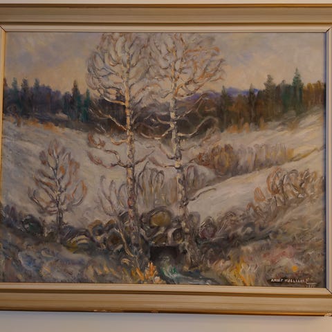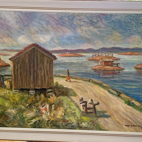 Arnt Kjelsås maleri med ramme. B 66cm, H 49cm.