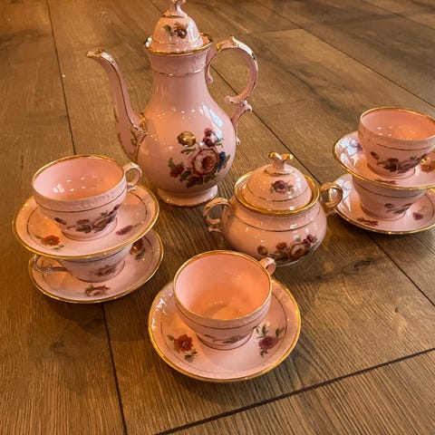 Feilfritt, ca. 100 år gammelt moccaservise fra Københavns Porsellains Maleri selges.