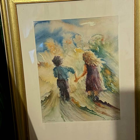Bilde med ramme. Reproduksjon på lerret. «Solitude» av J. Baptiste. Må hentes.