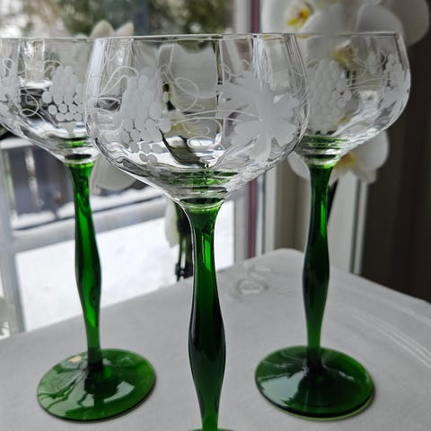 1) Selger tre utrolig flotte vinglass på svirlet kobolt stett! Håndlagde- nydelig form og farge!
