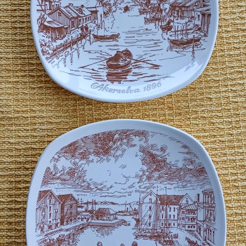 Disse fatene ble designet av Ragnar Grimsrud for Figgjo mellom 1946 og 1949.