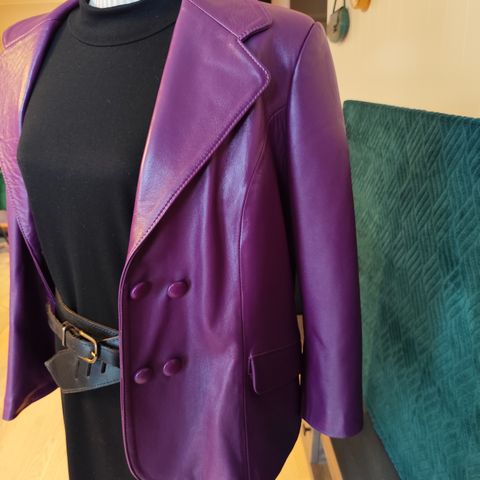 Great design, zipper, beautiful turquoise colour, interesting stitching, Italian size 44 = Norwegian size ca. 40, there is a miscoloration as seen in the last picture - probably a normal condition of the leather as a natural material, but fair to highlight to potential buyers :-)