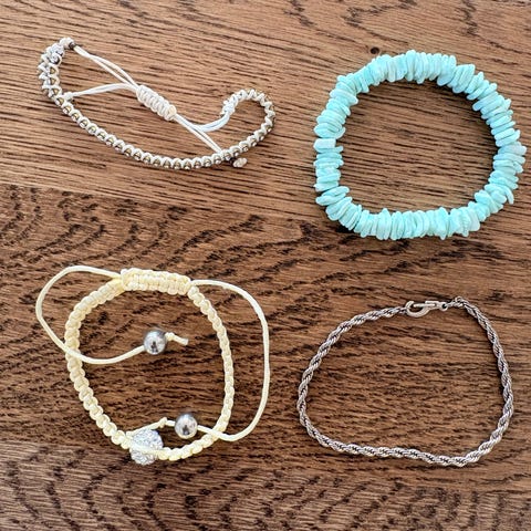 2 årmbånd med diamantlignende steiner i 2 ulike metallfarger (sølv farge, gull farge)
