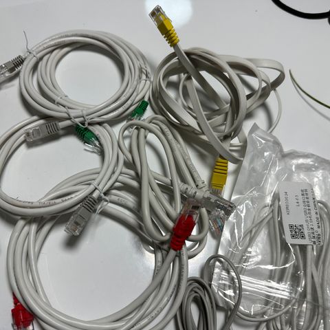 Ubrukte kabler 24 pr stk er CAT5e korte og ca 1 m. og 1,3meter 64,- +