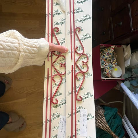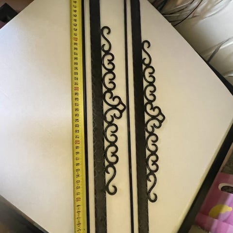 Smijernbeslag den til venstre er 27 cm bred, og den til høyre er 25 cm bred. Selges kr 100 pr stk pluss porto.