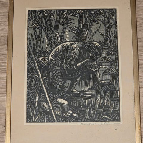 Hans Gerhard Sørensen. Tresnitt. Før uvær