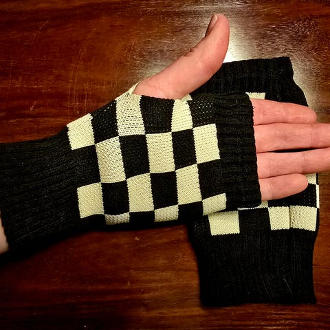 Ny genser med racing/sjakkbrett mønster.