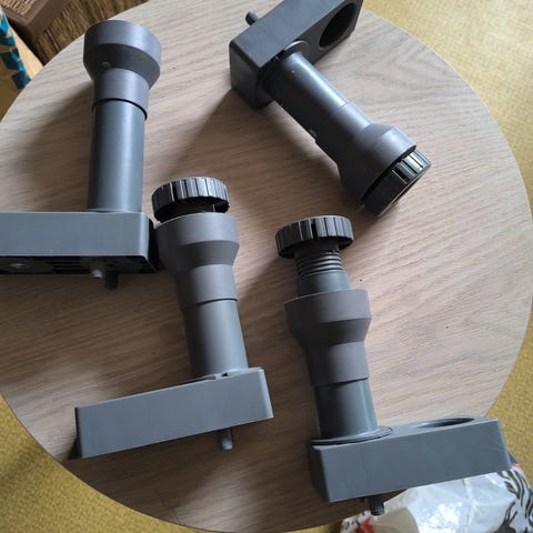 Sokkelben som kan brukes til skap, benk, møbler, garderober, kjøkkenskap. Plast ben justerbar fra 85mm til 135mm. Slik høyde er f. eks i alle Kvik kjøkken og Ikea kjøkken. 4stk ben i pose, inkl klips til sokkellist. 60kr/pakke. Det er mange pakker igjen