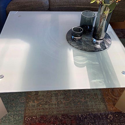 Pent brukt bord i glass fra IKEA til salgs. Stødige metallbein.