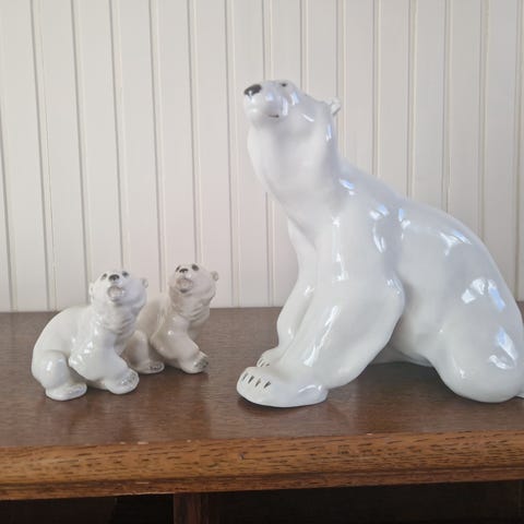 Røyskatt / snømus porselensfigur, figur, sett av to stykk. Dekorative