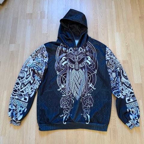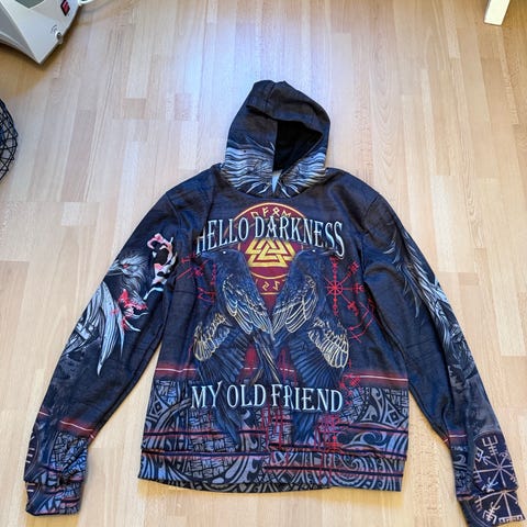Hvit «Vikings» genser i Strl M. Fikk feil en gang. Den har noe merker på armen og en prikk et annet sted, som var der når jeg fikk den. Ikke prøvd å vaske det bort, da det aldri var en genser jeg skulle ha i utgangspunktet. Den er ny/ubrukt, men satt den som brukt pga merkene. Selges som den er. Se bilder.