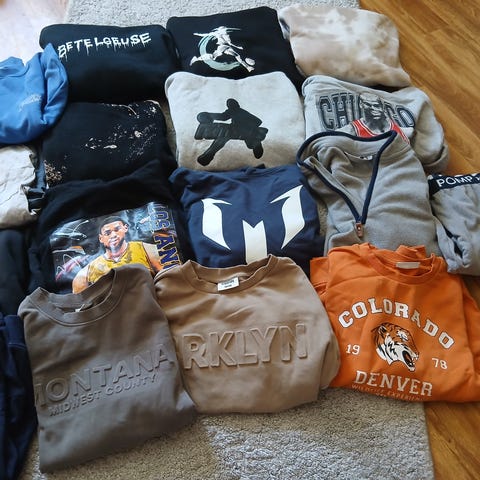 Merket på den mørkeblå hettegenseren har gått av i vask. Se bilde.