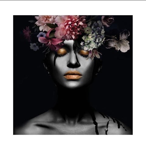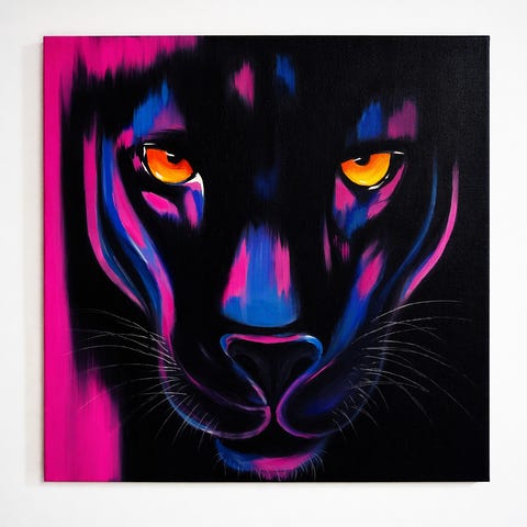 Hand-painted stencil & spray paint over screen print on black 360gsm Ispira 'Mistero' fine art paper.
