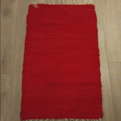 Helt ny ubrukt vevd teppe. Bredde 60 cm, lengde 95 cm uten frynser. Kan vaskes på 40 C